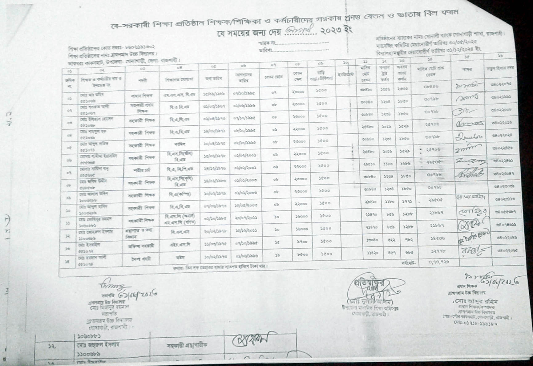 বে-সরকারী শিক্ষা প্রতিষ্ঠান শিক্ষক/ শিক্ষিকা ও কর্মচারীদের সরকার প্রদত্ত বেতন ও ভাতার বিল ফরম